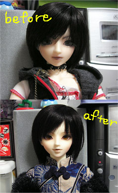 唇の色が乗って潰れてた歯(有るって気づいてなかったよー)にも、白を入れてくれたので、アオリめで見ると歯がチラリと見えて素敵ーv
