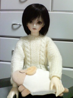 朝士狼を預けたら、晩ごはん後にはセーター着て帰ってきたw